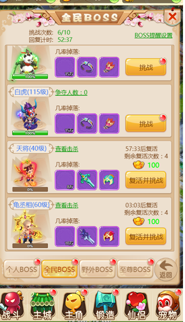 已死亡的BOSS可通過消耗元寶復活挑戰
