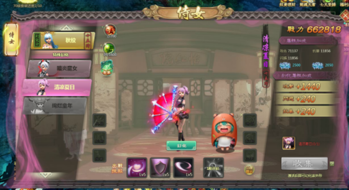 (2) 不同的侍女皮膚增加的屬性戰力可累加,皮膚越多,累加的屬性戰力越多;