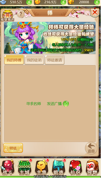 1.師傅必須大於徒弟3級方可招徒,收徒需要消耗收徒令