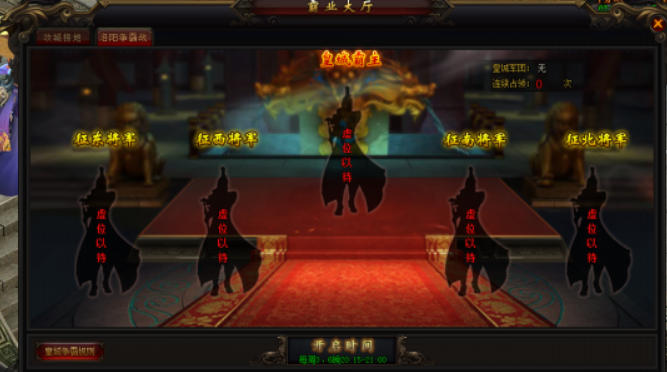 《黯神三國》皇城爭霸中,勝利方的軍團長可以獲得 “皇城霸主”稱號,同時可以任命四大將軍(征東將軍、征西將軍、征南將軍、征北將軍)。