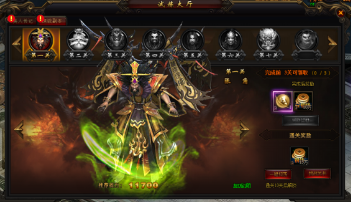 銅錢副本共10關,通關後第二天會重置,全部10關通關後可開啟一鍵掃蕩功能。