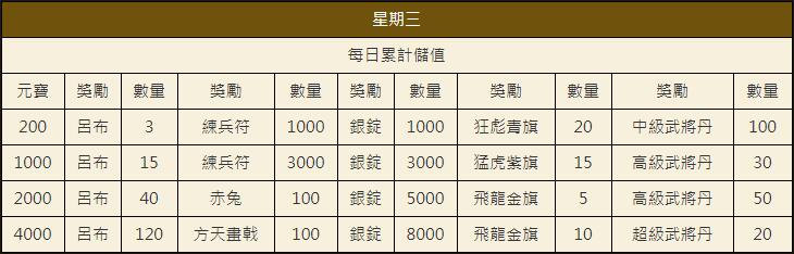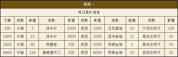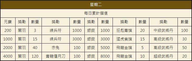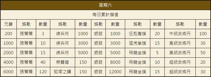 1.活動時間內,累計儲值滿以下金額,即可獲得虛寶獎勵。