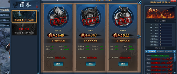 點擊圖鑒tips都可直接打開對應的產出副本介面及BOSS介面,啟動越多圖鑒獲得的加成屬性越多,永久加成戰鬥力哦!