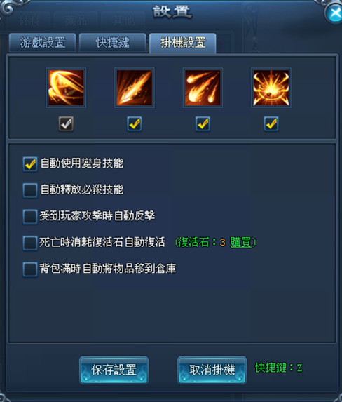 4、自動使用變身技能:掛機過程中可變身時,可自動變身。