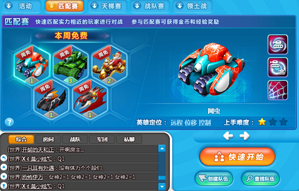 匹配賽全天開啟,玩家可快速加入等待中的隊伍進行匹配戰鬥,也可以自己創建房間,和隊友組隊一起參加戰鬥。