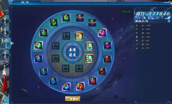 符靈系統歸於人物屬性提升的一個玩法,通過給人物裝備不同類別的符靈,增加人物屬性,提升個人戰鬥力。