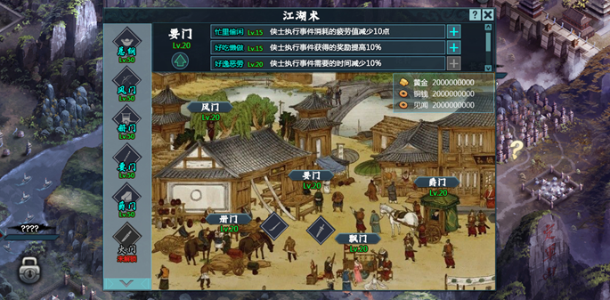 山莊:用於升級江湖科技,使用玩家在江湖中獲得的資源進行科技研究。