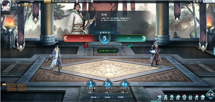 玩家可花費資直接獲得正確答案(每日有免費次數),玩家可花費資源下次答題獲得雙倍積分(每日有免費次數),玩家可花費資源下次答題獲得四倍積分(每日有免費次數)