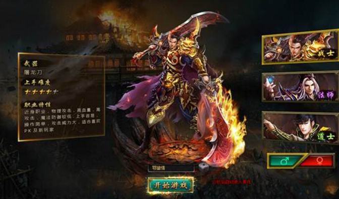 戰士:進身攻擊,爆發力強,攻高血厚,是戰鬥中的主要力量!烈火一出,天地戰栗!遊戲中的戰士為一般遊戲中的肉盾型態,玩家喜歡玩肉盾型態的話,可以選擇此戰士職業。戰士技能共分為:刺殺劍氣、戰神衝撞、雷霆蓮月、逐日劍法、戰聖烈焰等技能可供使用,詳細技能內容請參考遊戲內說明。