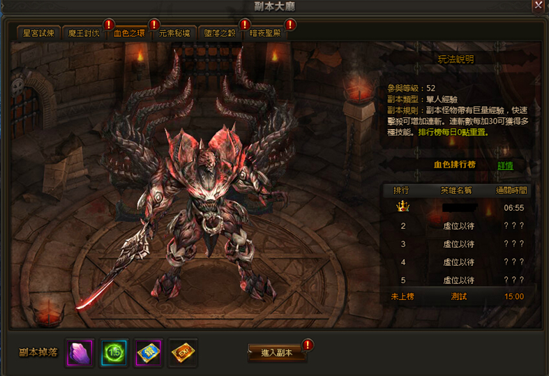 2.玩家進入副本後,擊殺成功後即可獲得獎勵;