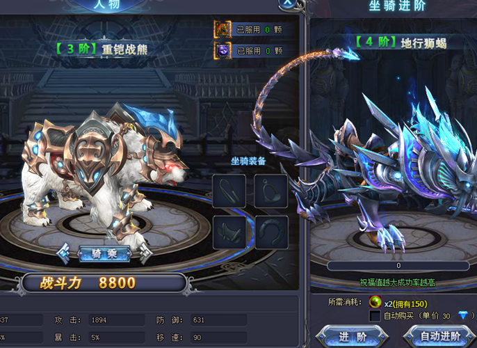 坐騎提供的屬性也就越高。極大的提升玩家戰鬥力。