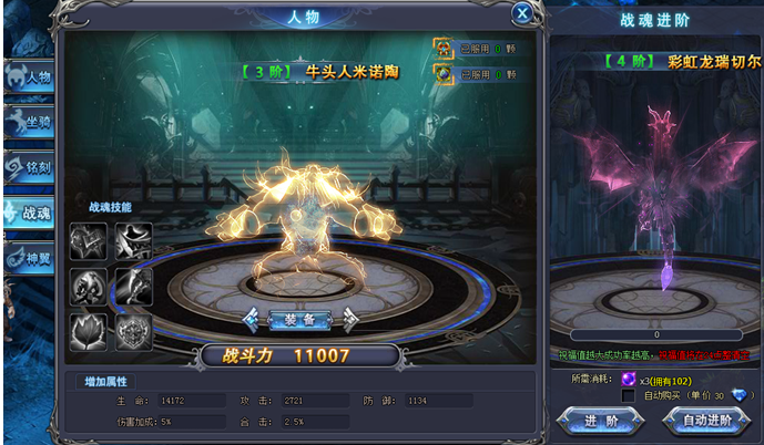 玩家開啟戰魂後,可使用“戰魂進階丹”提升戰魂等階