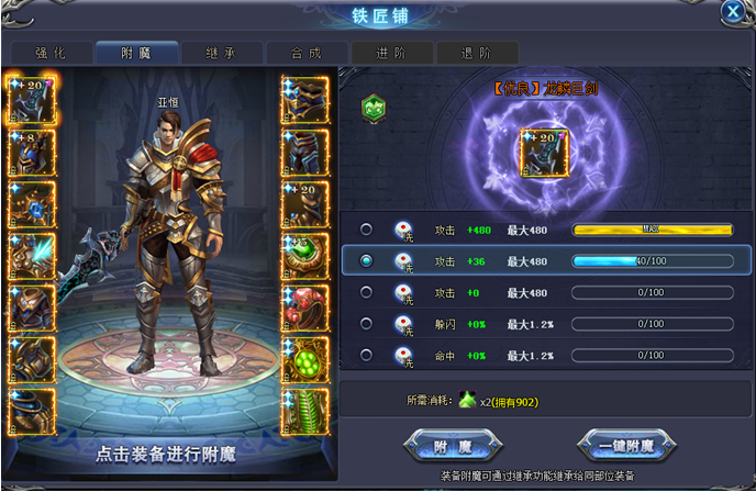 英雄領主中的裝備可以通過附魔賦予裝備額外的屬性,裝備的附魔等級越高附加的屬性也就越高。
