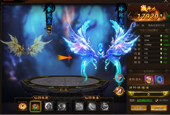 4)仙羽進階成功後,將獲得更炫更酷的外型和更加強大的屬性;