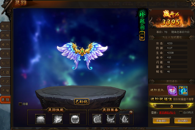 (2)靈羽進階需要消耗:“靈羽進階丹”,