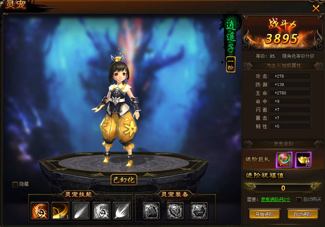 4) 靈寵進階成功後,將獲得更炫更酷的外型和更加強大的屬性;