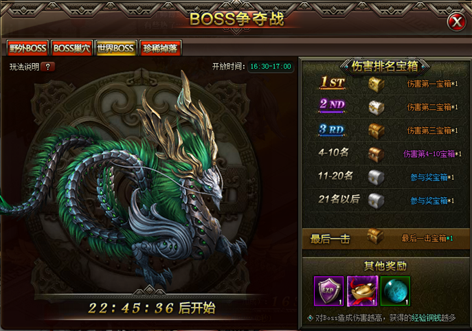5. 除了世界BOSS外當然還有我們終極BOSS,終極boss每天定時刷新一次,擊殺後根據排名獲得豐厚的獎勵。