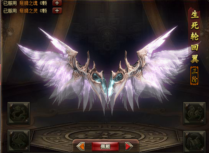 3. 翅膀裝備可以提升主角的屬性,隨著翅膀階級的提升,可以佩帶更好的翅膀裝備。