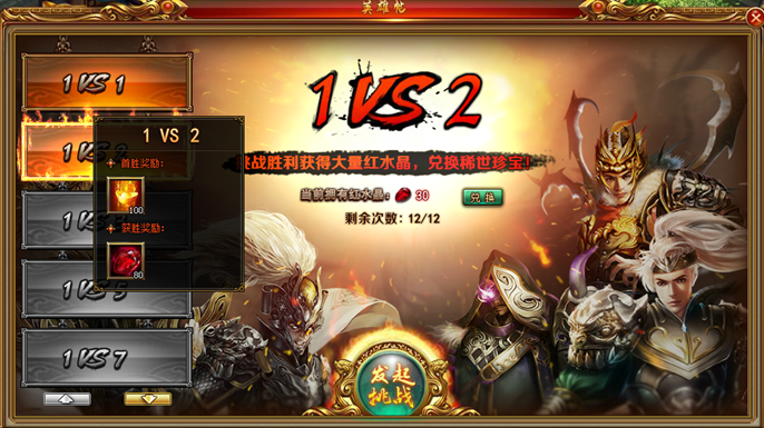 首次挑戰成功,我們就送元寶!挑戰的對手越多,獲得獎勵也就越多哦,還有專屬的稱號獎勵!另外不得不提的就是紅水晶。你肯定會問紅水晶是幹嘛用的?它同樣也是用來兌換稀有道具的。它不僅可以兌換元寶、銅錢、軍令包,還可以兌換極品兵魂“紫霞鎮雷鐧”,此乃真男人的象徵。