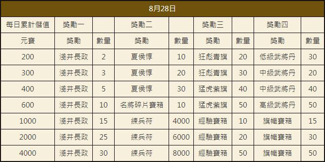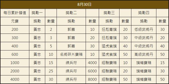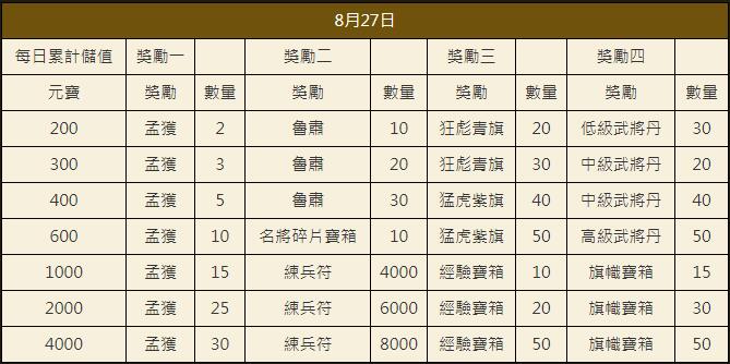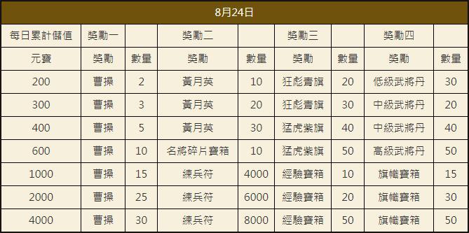 「烽火中原」0824每日累計儲值豪禮送
