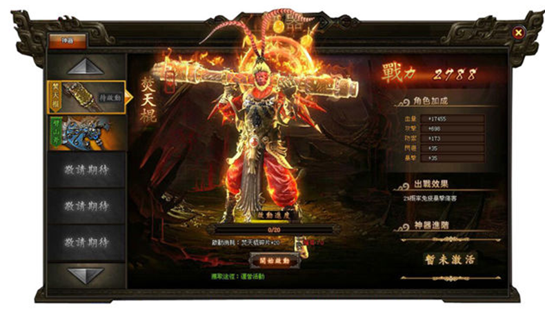 玩家激活神器便可獲得變身的技能,可即時變身為神靈(有時間限制及冷卻),並會把自已原有的攻擊技能更換為神靈的攻擊技能。(超值禮包可獲得限定神器、夥伴,每日重置)