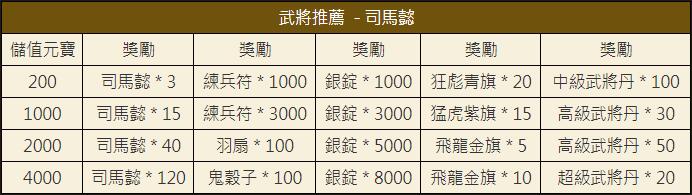 ◆ 活動時間:即日起,每天出強勢武將,陪您攻打天下!