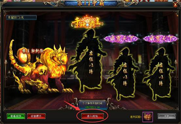 3. 點擊活動面板中間“進入戰場”按鈕,即可傳送到宗門爭霸地圖