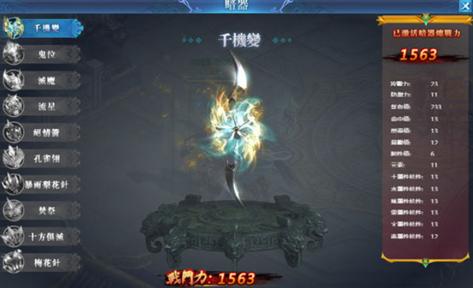 如機關投影般能夠隨意變幻形狀,每變幻一次,所發出的暗器也會跟著變化,令人無法捉摸,出其不意,制敵於先。