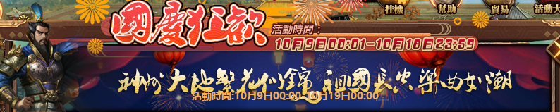 「三國霸者」將於10月9日至10月18日推出國慶狂歡特惠活動,整整10天,每天都有優惠大放送,還等什麼,讓我們一起來看看具體都有哪些吧!