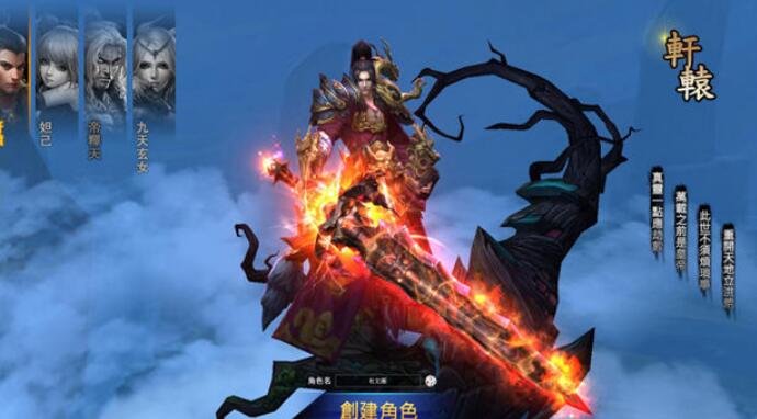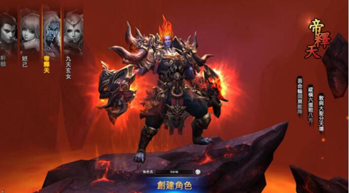 官方表示,本遊戲共擁有四個職業,分別為軒轅(人族男性)、帝釋天(魔族男性)、妲己(妖族女性)、九天玄女(仙族女性)。每個職業都有 4 個技能。第一個技能都是小範圍攻擊技能,擁有 4 段傷害;第二個技能是特效攻擊,每個職業皆不同,傷害量也不同;第三個技能是持續範圍輸出,每個職業的釋放模式或彈道模式都不同;第四個技能是大招,每個職業完全不同。