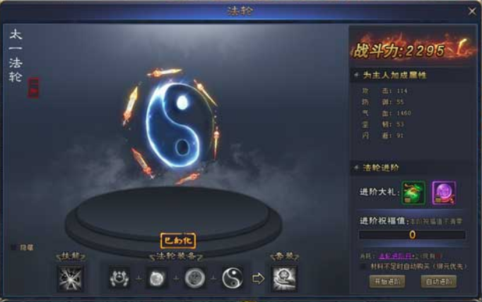 ●法輪屬性丹:資質丹和成長丹,分別對應法輪三階和四階開啟,開啟後可使用,使用越多,獲得屬性加成越高。