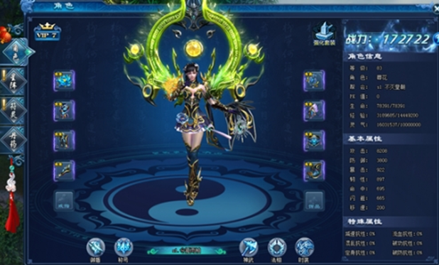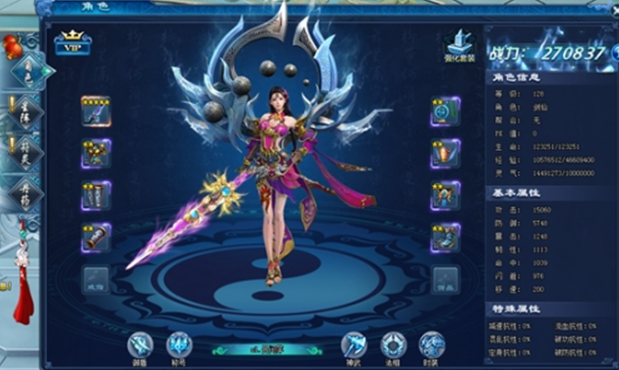 武學:葬花:一朵葬花先到,隨後萬盞寒芒、碧天炫舞:七色花瓣隨心舞,寒冰花幽命堪憂、鬼步:幻化夢蝶,閃避一切攻擊。