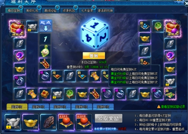 成為黃金VIP,可增加每日簽到次數。