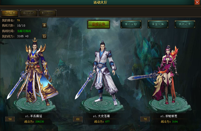 挑戰獎勵:進行挑戰不管輸贏都可以獲得經驗以及榮譽點。勝利將獲得更多經驗和榮譽點。