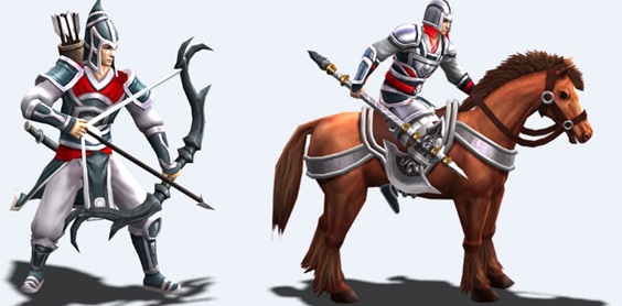 以弓、弩等輕型拋射兵器作戰的兵種,擁有正常的移動速度,主要用於遠程攻擊。槍兵的槍陣在弓箭手面前變得形同虛設,因此弓兵的攻擊對槍兵尤其有效,有額外的攻擊傷害加成。然而當弓兵遇著裝備了盾牌的盾兵時,弓兵的攻擊就會變得非常疲軟。