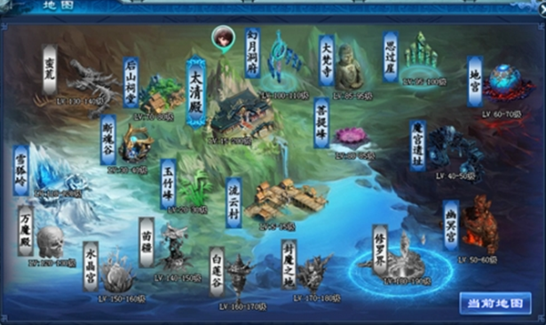 在世界地圖上,玩家可以查看遊戲中的所有地圖和地圖等級;還可以查看已解鎖的地圖,雙擊地圖圖示可以查看該場景的當前地圖;在世界地圖上點擊場景圖示上的傳送符圖示,可以使用飛行符迅速傳送至該地圖(VIP玩家可以免費飛行)。