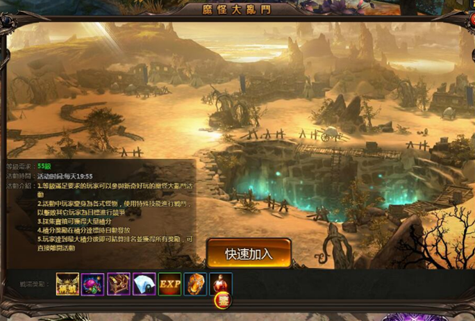 活動每天20:00-20:30開啟,等級達到55級的玩家可以參加魔怪大亂鬥活動。