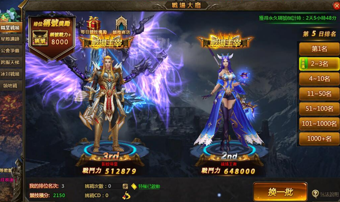 系統會根據所有報名玩家進行歷史最高戰力排名,每30名玩家歸納為一個戰場,進入戰場時會隨機分配勢力;