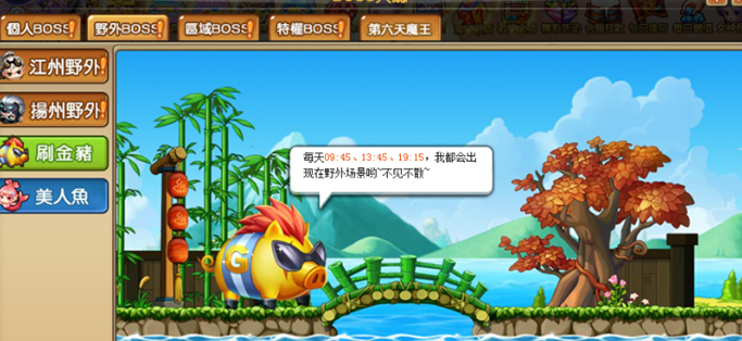 遊戲中每天都會有三個時段,可以擊殺金豬獲得額外的寶物。每日的特定時間09:45、13:45、19:15這三個時段時間一到,各大野外地圖會刷新出瘋狂奔跑的金豬。